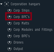 2. Once that is done goto Corp BPC's folder and right click the BPC you want to make and say Use Blueprint.