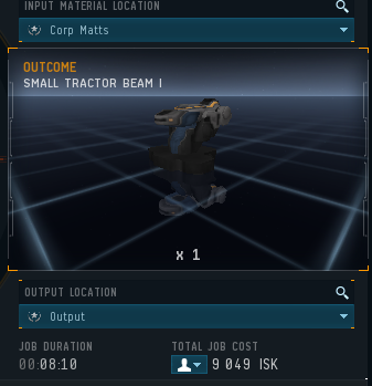 5. Make sure the dropdown at the TOTAL JOB COST is on your personal wallet or on the Corp Craft Wallet but then you also have to add funts to the Corp Craft wallet.